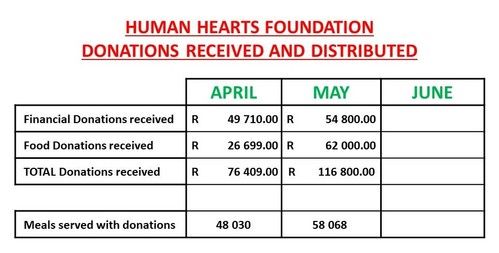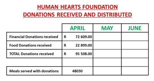 We want to thank those individuals, farmers, churches and businesses that have contributed food and funds into Human Hearts, allowing us to purchase and obtain materials to put together food parcels for distribution.